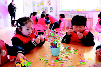 开展区域活动 近日,沂源县鲁山路幼儿园开展了区域活动。可满足幼儿活动和游戏的需要,更好地促进幼儿自然、自由、快乐、健康地成长。 (张宗叶)