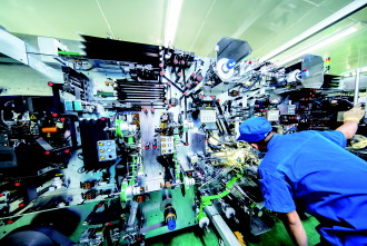 精工电子5GWh锂离子电池Pack项目全自动化生产设备运行。