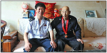 侯连营与离休干部李清录。