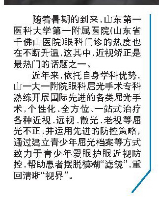 随着暑期的到来,山东第一医科大学第一附属医院(山东省千佛山医院)眼科门诊的热度也在不断升温,这其中,近视矫正是最热门的话题之一。