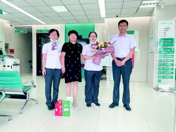 当天下午,支行领导得知消息后,党委书记、行长赵玉松与支行工会主席、副行长陈丽前往曙光分理处为蔡萌送去了鲜花和慰问品,对蔡萌同志忘我工作的精神给予高度评价,赞扬了这种无私无畏,勤勤恳恳的敬业精神,并嘱托蔡萌多加休息,保重好身体,嘱托网点员工对其尽量给予帮助。