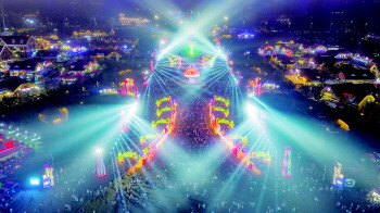 除了吃美食喝美酒,逛城打卡也必不可少。第31届青岛国际啤酒节期间,金沙滩啤酒城创意打造“花海”“灯汇”两大特色,全面呈现建党百年主线和“华彩啤酒节”主题,营造“白天游花海”“夜晚赏彩灯”的节庆氛围。同时,金沙滩啤酒城为市民游客奉上歌舞音乐、时装秀场、互动体验、巡游表演、灯光焰火等300余场次演艺活动。其中,作为历届啤酒节最受大众瞩目的演出形态,灯光焰火秀今年全面升级,带给游客更加震撼、炫丽的视觉体验。