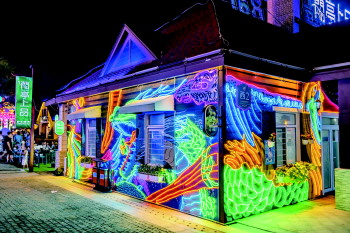 这里的美食可谓“家家有特色,户户有精彩”。常乐岛海鲜餐吧、鱼台生态龙虾、围炉锅盔、卡尔爵士巴伐利亚啤酒坊……麻辣鲜香的小龙虾、鲜嫩味美的青岛本帮菜、香醇的法式鹅肝、德式烤肠烤肘子等组合成中西合璧的美食联盟。“我们这里主要经营青岛本帮菜,让市民游客尝尝地地道道的青岛味道。海鲜大咖、脆皮乳鸽、风味羊排都是我们独具特色的菜品,烧烤当天现切现串。”常乐岛海鲜餐吧负责人介绍。