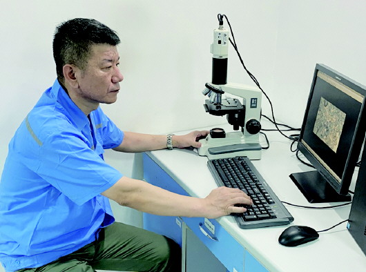 ◥王显其在观察功能性纤维横截面、纵向特征