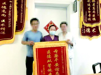为了表示感谢,7月26日,李女士夫妇手捧鲜花和锦旗送到了日照市人民医院产科二区金惠芳主任的手里。