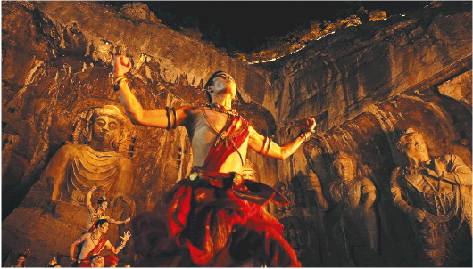 河南卫视中国传统节日系列节目的最新篇《七夕奇妙游》于13日晚播出。精心编排和拍摄的舞蹈节目《龙门金刚》立马刷爆网络,引来观众和网友的连连赞叹。该舞蹈节目在位于河南洛阳的龙门石窟之内实景拍摄,配合着悠扬的乐曲,“伎乐天”身环飘逸的彩带,在石窟之内凌空飞舞,婀娜柔美的身姿让人看得如痴如醉。同时,面相威严的“金刚护法”伴随着铿锵有力的鼓点舞动,与“伎乐天”形成了刚柔并济的呼应,显示出孔武有力的美感。而他们所起舞的舞台,雕刻着庄严佛像的龙门石窟穿越千年,在不动声色之中彰显着自身深厚的文化魅力。