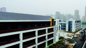 作为一所典型的中式校园,记者看到,济宁第一中学附属小学呈院落式布局,偌大的广场东西两侧分布着4栋教学楼,而广场正中间是名为尚书楼的综合办公楼。“济宁是一个文化底蕴深厚的城市,所以设计上运用了新中式风格,轻盈活泼。”徐登利告诉记者,济宁第一中学附属小学以“运河文化,中式之魂”为设计主题,力求体现济宁地区的建筑特色,在建筑外饰材料方面,采用传统与现代相结合的方式。设计中大量元素古为今用,从大局到细节里都渗透出民族文化的气息。该项目在设计材料上,一方面采用仿木构件、青砖、灰瓦、片墙来延续历史,另一方面运用轻钢结构和玻璃幕墙等现代建筑手法来增强时代感。在颜色的搭配上,以黑、白、灰三色的搭配来表现中式风格的组合。在这三者的组合中偶尔点缀些中国红,亦或是仿木色,在不同程度上增添了建筑的优越、活泼之感。