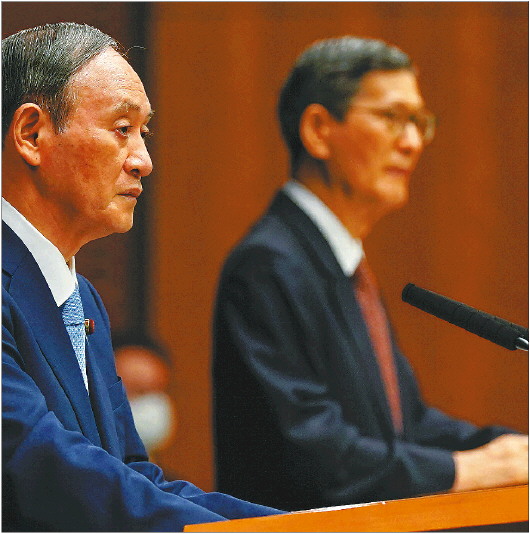 8月17日,日本首相菅义伟在东京出席新冠疫情新闻发布会,宣布扩大防疫紧急状态范围。 新华/法新