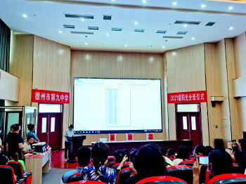 下午2时左右,德州市第九中学2021级阳光分班仪式在学校礼堂举行,参加阳光一键分班的学生家长代表、学校领导及教师代表,共同见证分班过程。