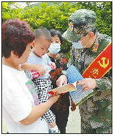 向市民发放人防宣传材料。