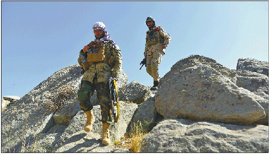 9月1日,反塔利班武装人员在阿富汗潘杰希尔的山区巡逻。 新华社发