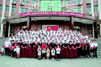 今年7月,汶上县第二实验中学全体师生通过“听党话 感党恩 跟党走”系列活动如歌咏比赛、手抄报评比、党支部召开党员大会、书记讲党课、“享受阅读,奠基人生”读书节等活动表达对党的无比热爱。