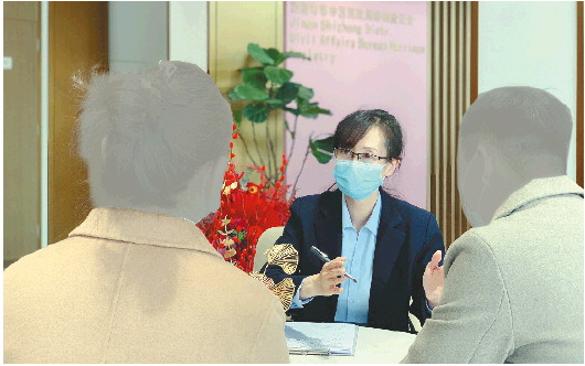 时晨曦说:“调解工作其实从2019年初就开始了,调解比例一年能达到20%到30%。以前调解员可能跟前来登记离婚的夫妻只能见一面,‘离婚冷静期’的实行,对婚姻调解工作开展起来是有益处的。”