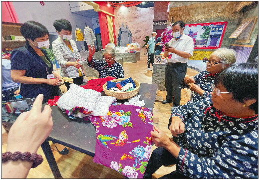 沂蒙乡村的老人采用传统纺织技艺,现场制作小棉袄、布鞋。