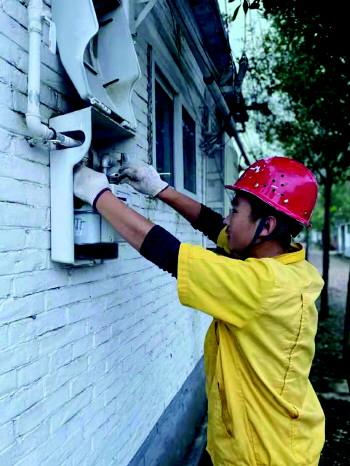 吴宾正在给用户维修燃气表。