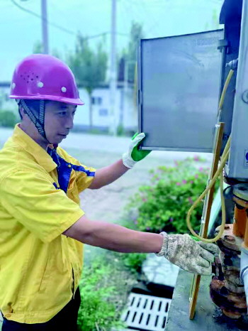 为保障用户用气安全,赵龙正在进行燃气调压箱日常维护。