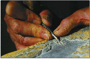 ◤制砚大师王开全。
