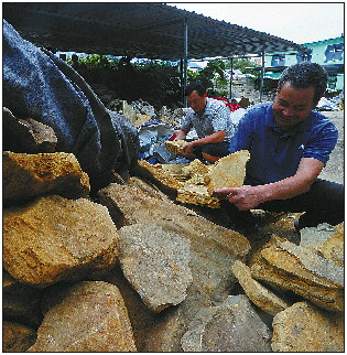 金秋十月是个收获的季节,临沂市费县近郊的一处简易房中十几方徐公砚的雕刻和抛光也已完成,它们的制作者就是制砚大师王开全和他的“团队”——其实就是由他的弟弟和两个儿子组成的。