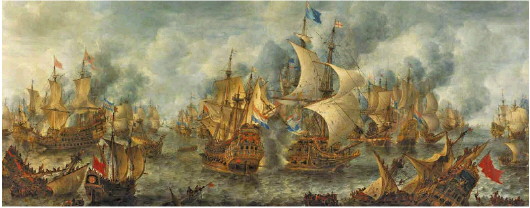 1653年8月10日,第一次英荷战争期间,荷兰旗舰与英国旗舰“决心号”在布雷德罗德群岛中部的特海登附近展开厮杀
