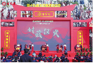 美丽的古贝春工业旅游园区处处张灯结彩、焕然一新。气球拱门横跨古贝春大道,两边一排排用于奖励经销商的高级轿车身披彩缎,整装待发。酒仙山前广场上,礼炮林立、美酒飘香。红黄相间的舞台设计象征着古贝春红红火火的事业和丰收的喜悦。
