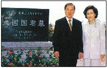 ◤卢泰愚和夫人在位于济南长清的卢国国君墓前留影。 (资料片)