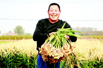 时值深秋,天气逐渐转凉,这时把大姜切丝,伴着葱根红糖煮出一锅姜汤水来趁热喝下,身子里的寒气便被驱赶走大半,整个人都跟着暖和起来。在这个十月深秋里,日照市莒县峤山镇的大姜成熟了。