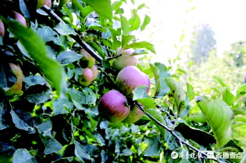 在大姜收获时,这里的苹果也逐渐成熟。峤山镇陈家沂水村有一批树龄超过70年的国光苹果树,这些树的主干枝十分粗壮,形状千奇百怪,树形奇特,每棵老果树每年结苹果两千斤左右,所结的果子皮薄水多,吃起来酸甜爽脆。国光苹果树生长环境与大姜相似,而且对于土壤要求同样较高,因此当地人便在苹果园的空地里种上大姜。峤山镇种植大姜以黄豆为基肥,杜绝化肥的使用,保证大姜生长过程的天然无公害,收获后的姜杆就地铺在果树下为果树提供养分,果树落在地上的苹果再作为肥料供给大姜,两种作物相互补充形成了一个生态农业循环。