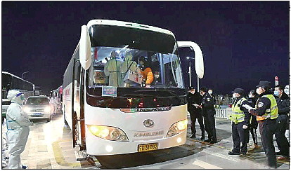 ▲10月29日,滞留在额济纳旗的首批旅游包车游客被转运。他们将前往包头和鄂尔多斯的集中隔离点进行统一隔离。