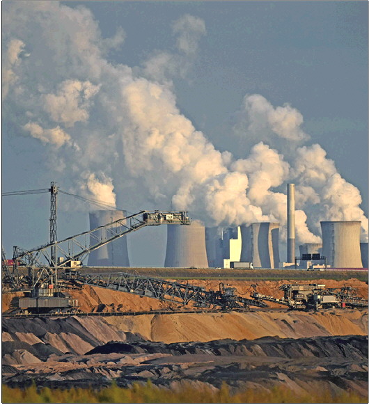 这是10月27日拍摄的德国能源巨头莱茵集团的一座燃煤发电站,附近可以看到露天开采的煤矿。 新华/法新