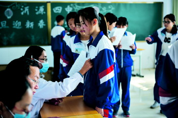 健康体检 近日,沂源四中联系悦庄镇卫生院对学生进行全面健康体检。 (刘士春)