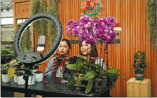 商户正在通过线上直播销售花卉。