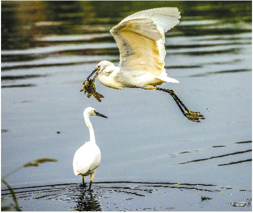 不一会儿,“美味”成功捕捉,白鹭真的是一位捕鱼“高手”呢。