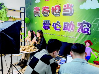 “这是青州市东夏镇立秋之后刚出井的老姜,今天在直播间有优惠,感兴趣的朋友抓紧点击屏幕下方小黄车。”11月10日下午2点,两位年轻女孩坐在手机和环形灯前,她们面前摆着一堆还带着泥土的姜。坐在一旁的青州易起网络科技有限公司自媒体部总监袁泮旭紧盯电脑屏屏幕,不时跟身旁的男孩交流。见直播节奏减慢,他叫过一位主播到跟前,指着屏幕上的后台实时数据进行分析,“目前的下单转化率还不够,你调整一下直播话术试试看。”