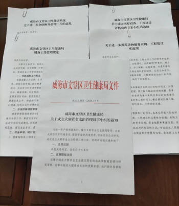 ◤图为文登区卫生健康局制发的相关制度文件。