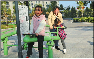 回迁居民享受幸福生活。