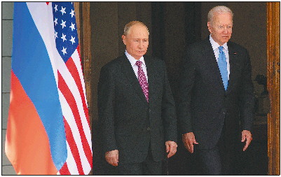 ◥6月16日,美国总统拜登(右)和俄罗斯总统普京在瑞士日内瓦的拉格朗热别墅举行会晤。