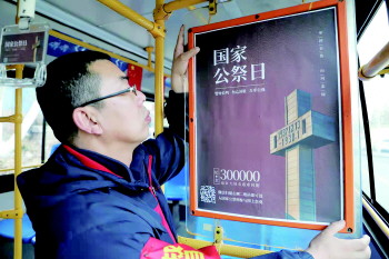 在第八个国家公祭日,青岛公交362线路、366路线打造了以“铭记历史 珍爱和平”为主题的公交车厢,向乘客传递铭记历史、不忘过去、珍爱和平、开创未来的信念。除此之外,乘客微信扫描车厢内的二维码即可登陆“国家公祭网”进行网上祭奠。