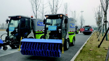 据介绍,目前潍坊市中心城区共有应急队伍8支(含市直),人员4000余人,配置清雪除冰机械共1100余台(辆),包括大型清雪滚刷185台,人行道小型清雪滚刷123台,大型除雪铲173台,抛雪机15台,装载机217台,运输车302辆,融雪剂撒布机87台,储备融雪剂1600吨。