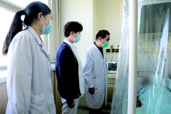 医护人员查看周女士恢复情况。