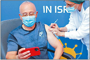 1月3日,在以色列特拉维夫,一名老人接种第四剂新冠疫苗。 新华/法新