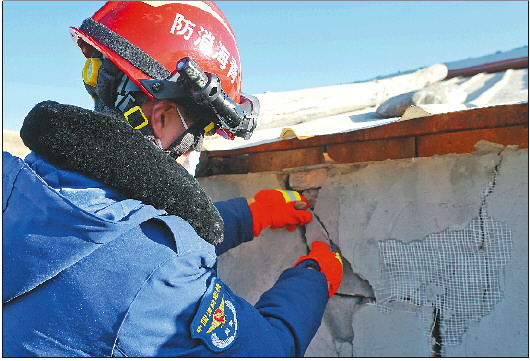 1月8日,在青海省门源县皇城蒙古族乡马营村,海北州消防救援支队队员在入户排查。 新华社发