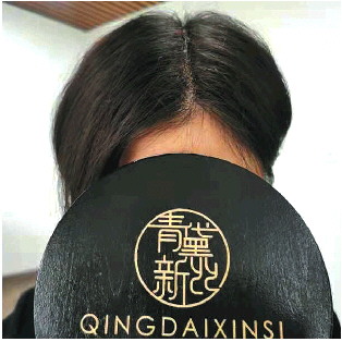 2021年10月底,欣萌来到位于经十路华润大厦内的济南青黛增发。到店里后,欣萌看到这家店的LOGO写着“青黛新丝”字样。据店里工作人员介绍,他们用的发丝是日本进口的,能够保证三到五年不掉。