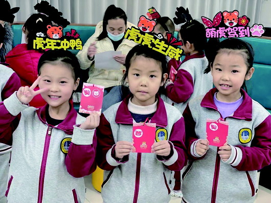 在济南市盛福实验小学,低年级的同学们头戴自己设计的虎年头饰,通过“集虎福”开启了乐考之旅。据介绍,各学科老师根据学科特点,设计了“能说会道”“笔墨飘香”“精打细算”等八大主题内容,学生手持“集福卡”愉快地接受挑战。