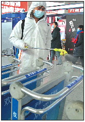 工作人员对车站公共区域定期消毒。