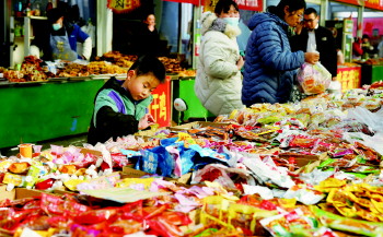 1月20日恰逢大寒节气。大寒是二十四节气当中的最后一个。临近春节,不少市民也开始置办年货。图为当天在玄家朱茂大集,一位小朋友正在挑选零食。