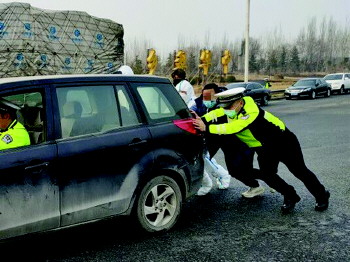 执勤交警随后喊来同事,准备推车启动。一名交警在车内掌控方向,其余人员努力的向前推动车子,推了三次后,最终车辆启动起来。随后,执勤民警嘱咐驾驶员到就近修理厂维修车辆。司机感慨到:“这大冷的天,谢谢交警同志,让我感到心里暖暖的。”