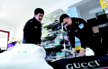 海关缉私警察在涉案奢侈品仓库清点走私货物。陈星华 摄