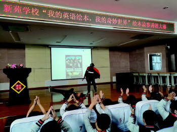 基于这种学情,新苑学校确定以“自然拼读法”为抓手,以“课本剧表演”为载体,以“绘本阅读”为突破口,辅以“英语趣味配音”、“经典英文歌曲”、“原声英语电影”,引导学生把所学与生活相关联,激发英语学习兴趣,从而提升“听、说、读、写、演”等综合能力。