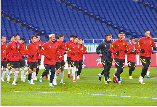 一线生机,国足需要背水一战。图为国足赛前公开训练。 新华社发