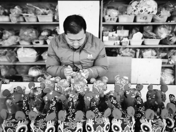 牛成路正在制作布老虎。